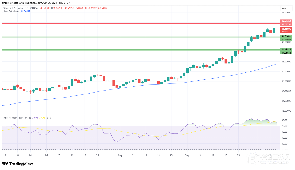 •白银测试了历史高点,但失去了动力,回落至49.00美元以下。