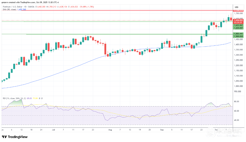 【华通白银网10月10日讯】•由于交易员在历史高点附近了结获利,金价正在下跌。
