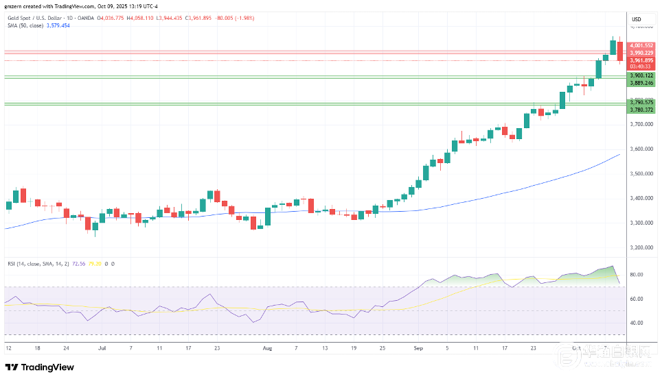 若金价跌破3950美元,则将朝着3890-3900美元支撑位前进。
