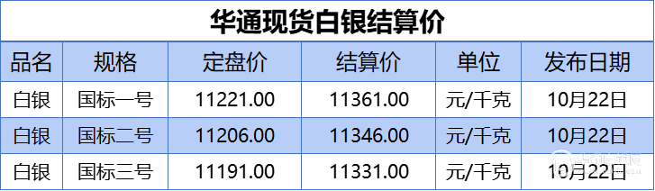 上海华通现货白银结算价:一号国标、二号国标、三号国标如下: