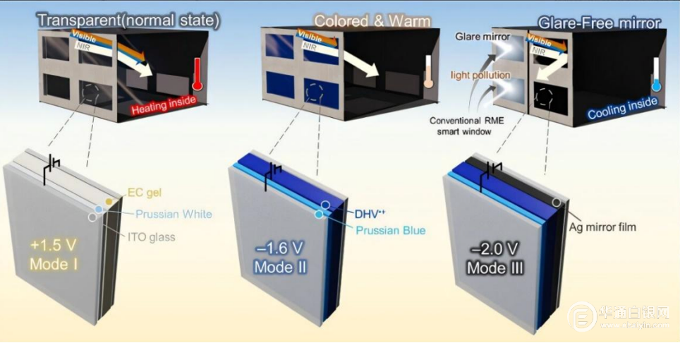 韩国科学技术院(KAIST)的开发人员表示,他们的可逆电沉积和电致变色镜(RECM)系统有三种模式,可以控制窗口调节可见光和红外热辐射的能力。