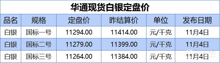 上海华通现货白银定盘价:一号国标、二号国标、三号国标如下:
