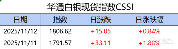 华通白银现货指数CSSI走势日报,今日指数1806.62,日涨跌+15.05,日涨跌幅+0.84%