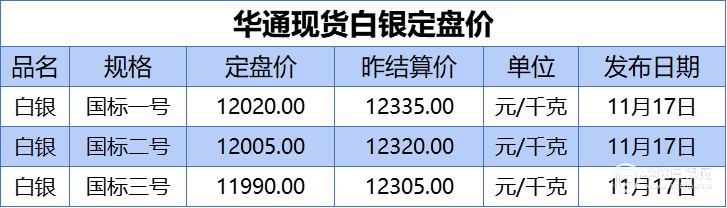 上海华通现货白银定盘价:一号国标、二号国标、三号国标如下: