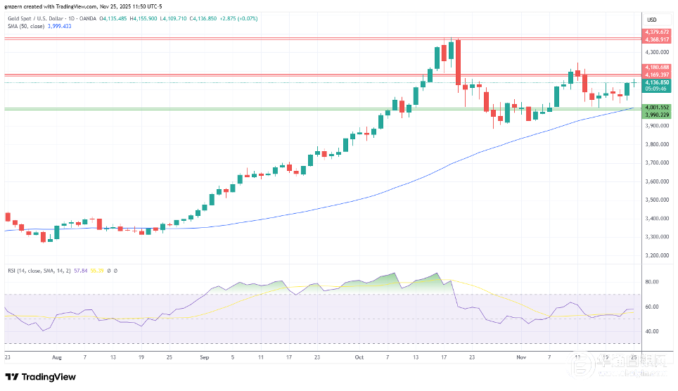 从技术面看,黄金需要稳定在阻力位4170-4180美元上方,才能获得额外的上行动能。