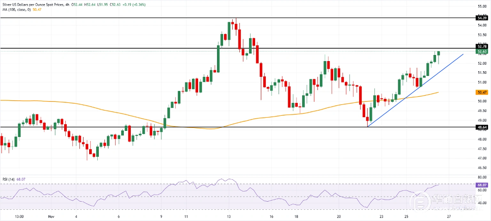 【华通白银网11月27日讯】•美国国债收益率仍面临压力,周三白银价格大幅上涨至52.45美元。