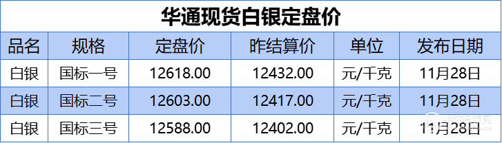 上海华通现货白银定盘价:一号国标、二号国标、三号国标如下: