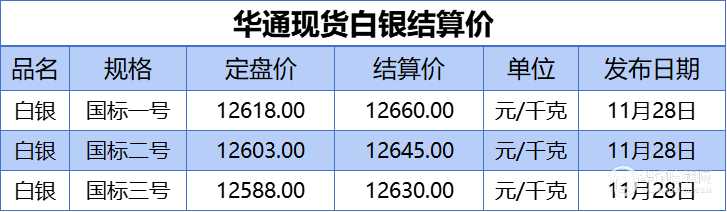 上海华通现货白银结算价:一号国标、二号国标、三号国标如下: