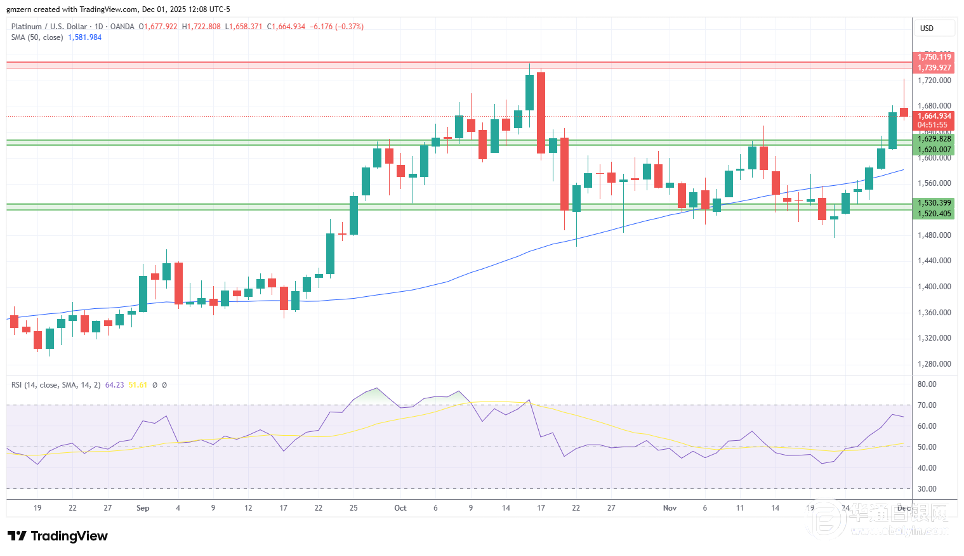 跌破1650美元将把铂金推向最近的支撑位1620-1630美元。