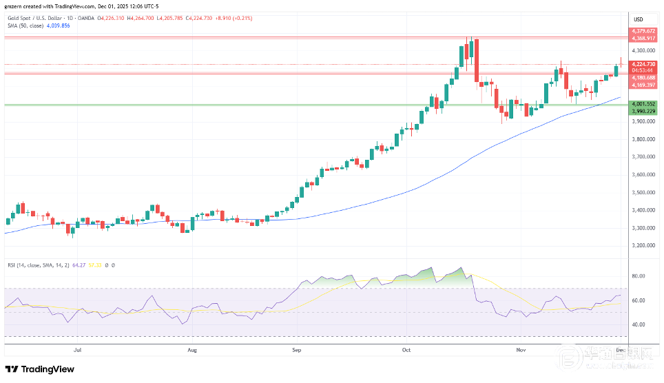 【华通白银网12月02日讯】•金价试图收于4250美元上方。