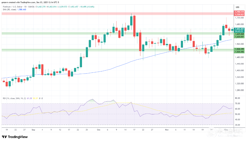 如果铂金保持在1650美元上方,则将向1740-1750美元阻力位前进。