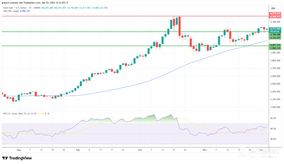 【华通白银网12月04日讯】•金价收于4200美元/盎司上方。