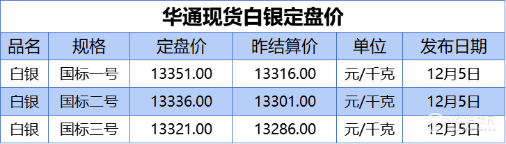 上海华通现货白银定盘价:一号国标、二号国标、三号国标如下: