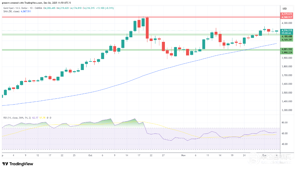 【华通白银网12月05日讯】•金价回落至4200美元上方。