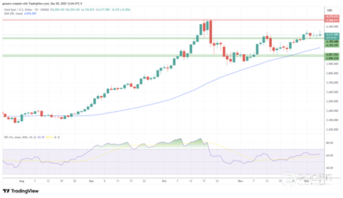 从技术面看,黄金需要收于4250美元上方才能在短期内获得额外的上行动力。