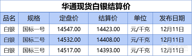 上海华通现货白银结算价:一号国标、二号国标、三号国标如下: