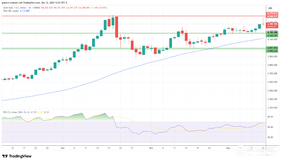 如果金价回落至4250美元以下,则将向最近的支撑位4170-4180美元区间前进。