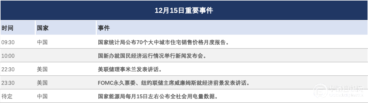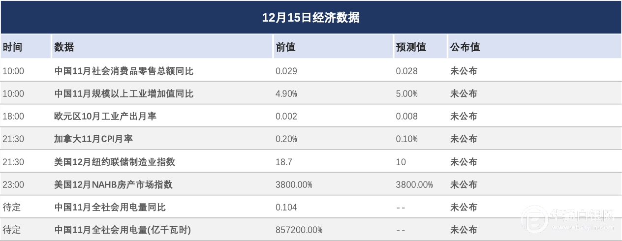 【华通白银网12月15日】•金价未能收于4350美元上方,随后回落。