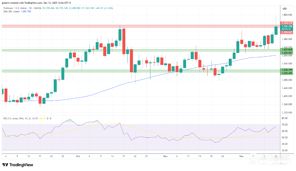 铂金试图突破1740-1750美元阻力位,但由于交易商对白银价格动态的反应,铂金失去了动力。