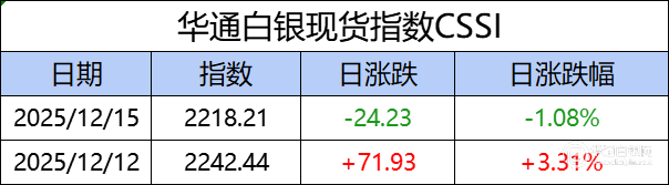 华通白银现货指数CSSI走势日报,今日指数2218.21,日涨跌-24.23,日涨跌幅-1.08%