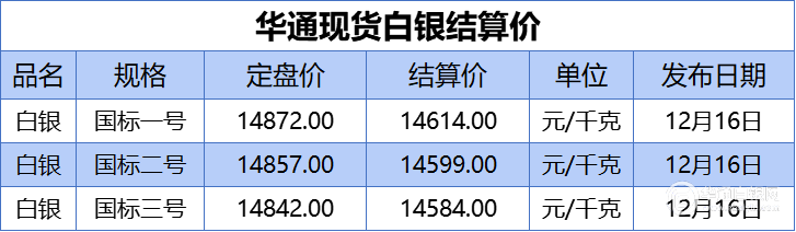 上海华通现货白银结算价:一号国标、二号国标、三号国标如下: