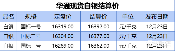 上海华通现货白银结算价:一号国标、二号国标、三号国标如下: