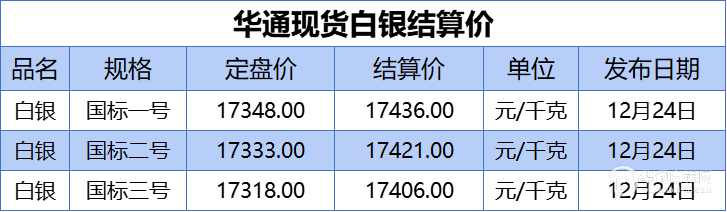 上海华通现货白银结算价:一号国标、二号国标、三号国标如下: