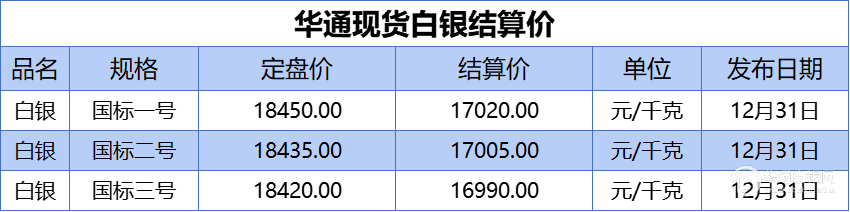 上海华通现货白银结算价:一号国标、二号国标、三号国标如下: