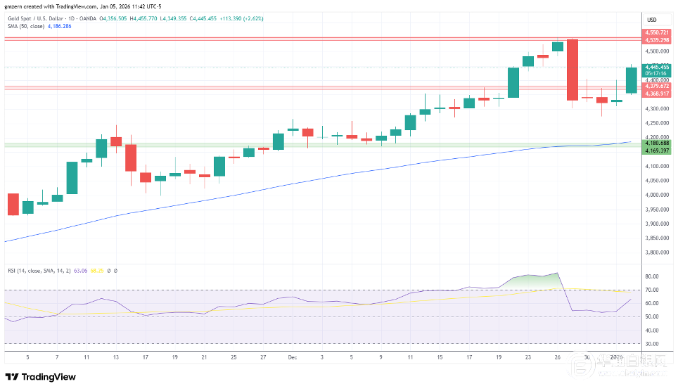 【华通白银网1月6日】•交易员关注马杜罗的命运,金价攀升至4450美元/盎司水平。