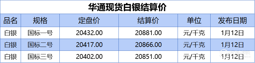 上海华通现货白银结算价(2026-01-12)
