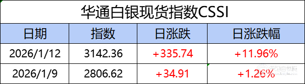 华通白银现货指数CSSI走势日报,今日指数3142.36,日涨跌+335.74,日涨跌幅+11.96%