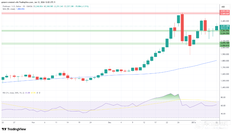 突破2350美元将推动铂金向2450美元附近的近期高点上扬。
