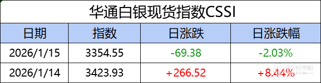 华通白银现货指数CSSI走势日报,今日指数3354.55,日涨跌-69.38,日涨跌幅-2.03%