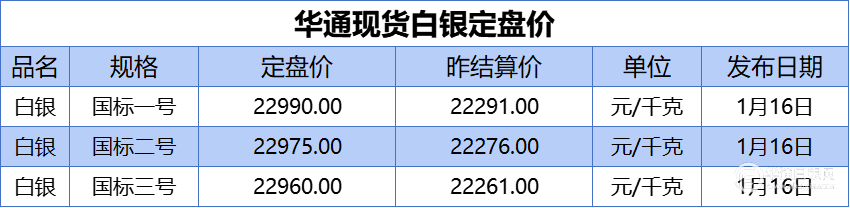上海华通现货白银定盘价:一号国标、二号国标、三号国标如下: