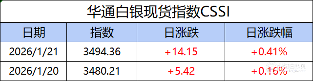 华通白银现货指数CSSI走势日报,今日指数3494.36,日涨跌+14.15,日涨跌幅+0.41%
