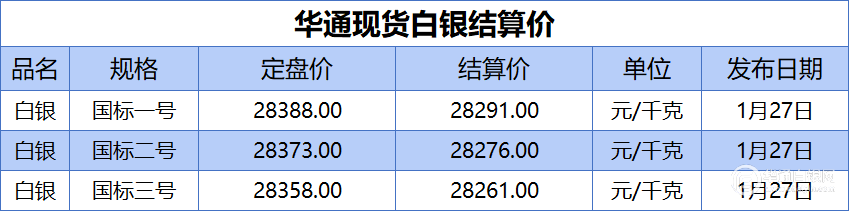 上海华通现货白银结算价:一号国标、二号国标、三号国标如下: