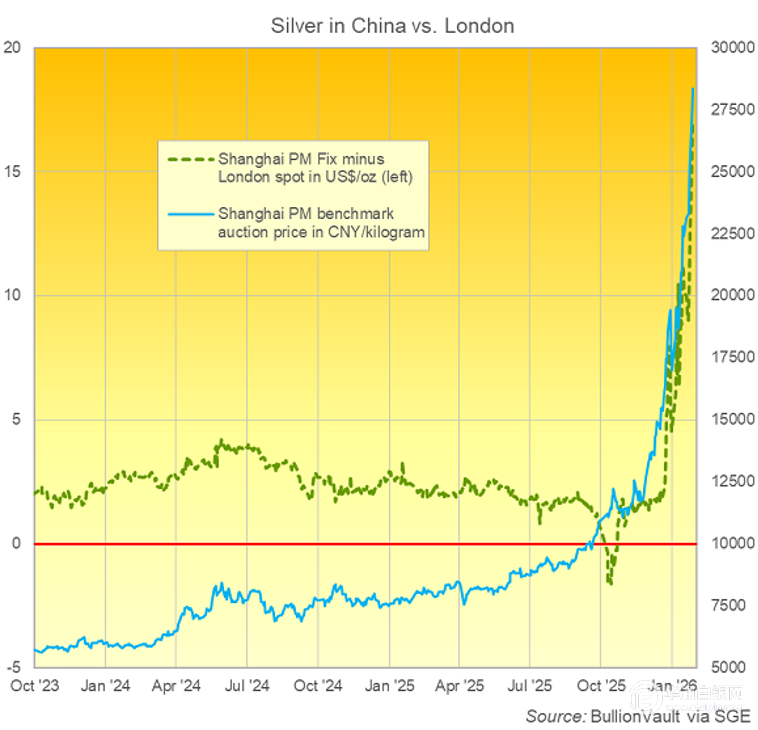 但周二,中国白银基准价格比伦敦高出近17美元/盎司,这表明中国白银需求明显大于供应。