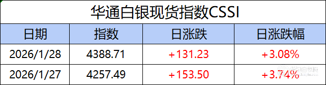 华通白银现货指数CSSI走势日报,今日指数4388.71,日涨跌+131.23,日涨跌幅+3.08%