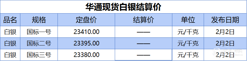 上海华通现货白银结算价:一号国标、二号国标、三号国标如下:
