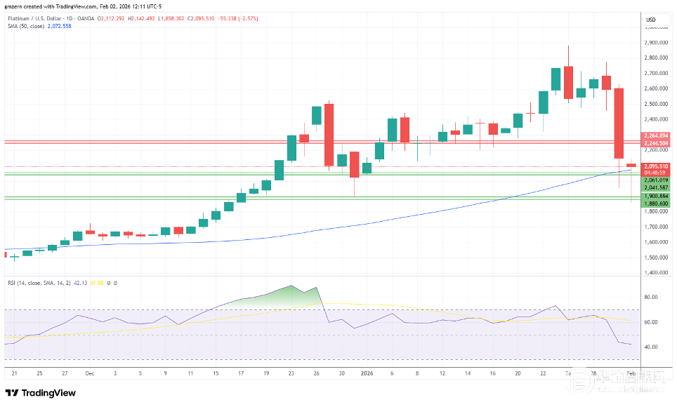 如果铂金价格保持在2100美元以上,则将会向2245美元至2265美元阻力位迈进。