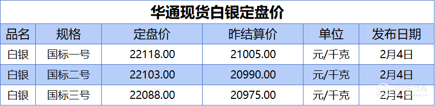 上海华通现货白银定盘价:一号国标、二号国标、三号国标如下: