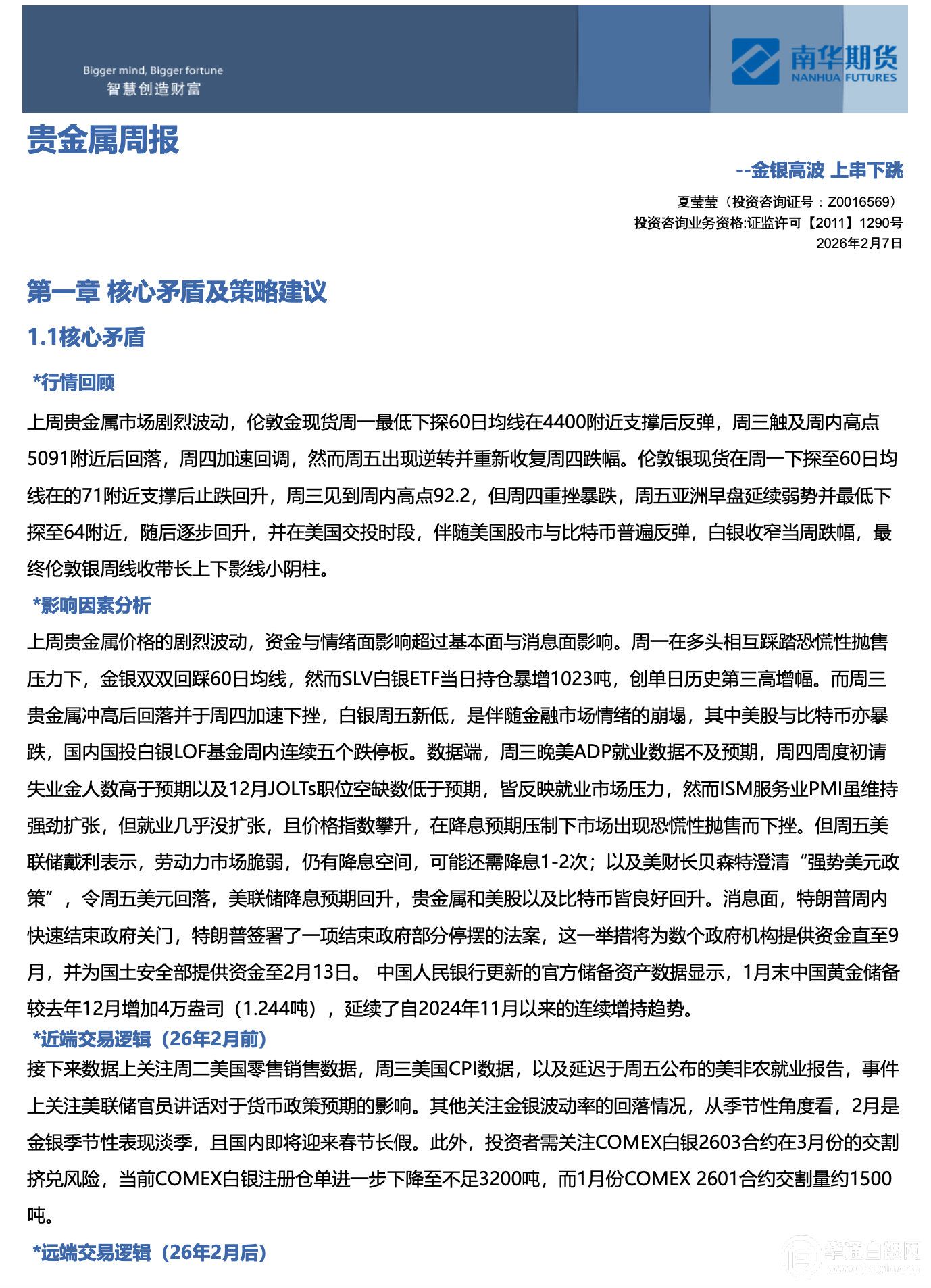 南华贵金属(黄金&白银)周报:金银高波 上串下跳