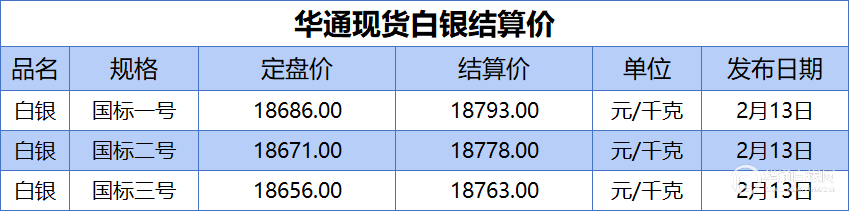 上海华通现货白银结算价:一号国标、二号国标、三号国标如下: