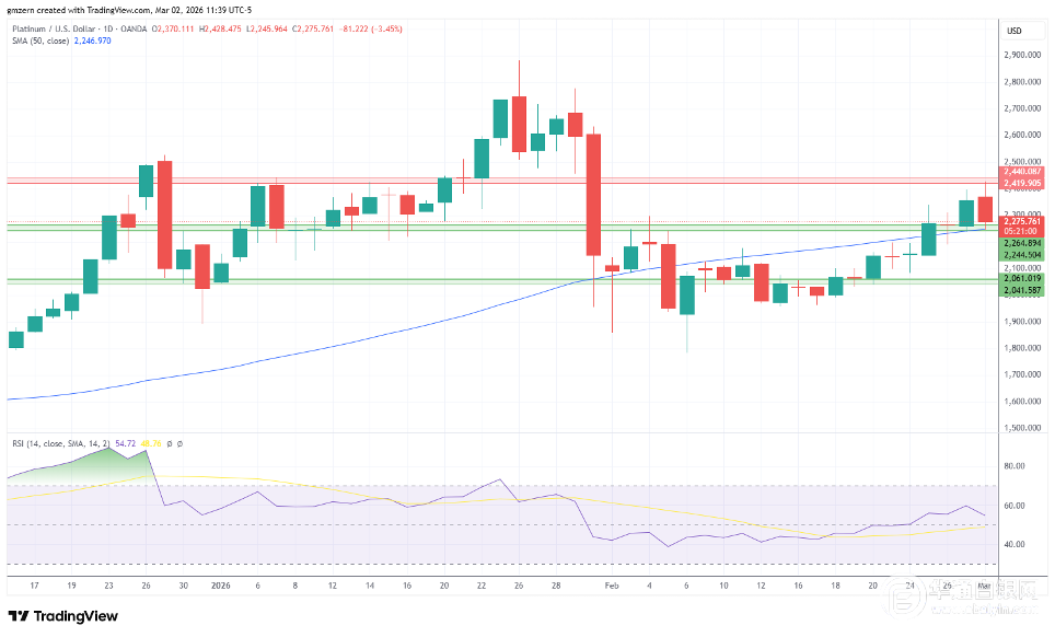 铂金价格测试2245-2265美元支撑位