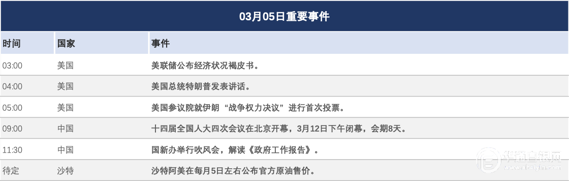 在宏观经济方面,美国ADP私营就业报告显示,2月份新增就业岗位6.3万个,高于市场预期;而ISM2月份服务业采购经理人指数(PMI)从上月的53.8上升至56.1。这或将支撑美元,并抑制银价的上涨势头。