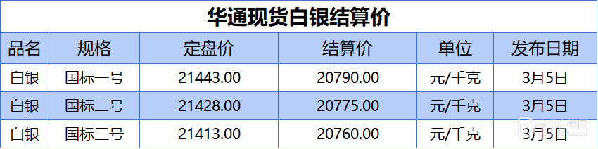 上海华通现货白银结算价:一号国标、二号国标、三号国标如下: