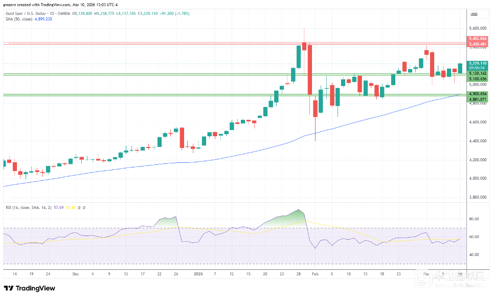 【华通白银网3月11日讯】•由于交易商聚焦石油市场动态,黄金回升至5200美元水平上方。