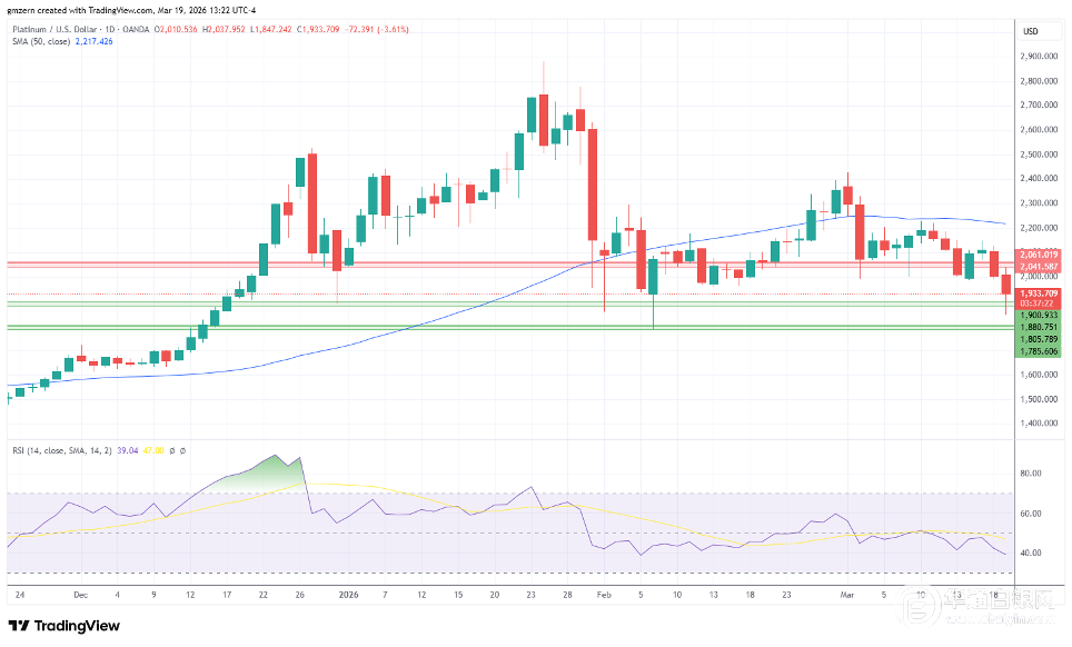 油价从盘中高点回落并继续走低,但此次回调并未给铂金市场带来任何支撑。交易员们仍担心高能源价格会损害全球经济并减少对铂金的需求。