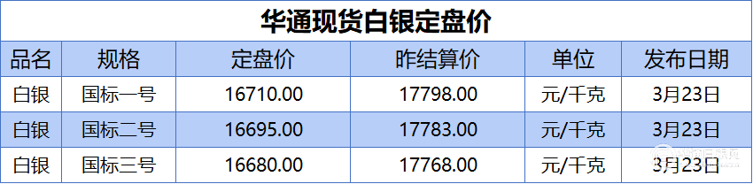 上海华通现货白银定盘价:一号国标、二号国标、三号国标如下: