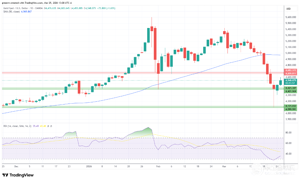 目前,黄金正试图稳定在4550美元上方。如果这一努力成功,黄金将朝着最近的阻力位进发,该阻力位位于4660至4680美元区间。一旦突破4680美元,黄金将向4800美元迈进。